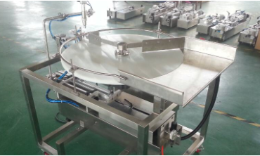 Şişeleri Şişeleri besleme masasına koyarak işçi, daha sonra tablo şişeleri konveyör bandına besleyecektir.